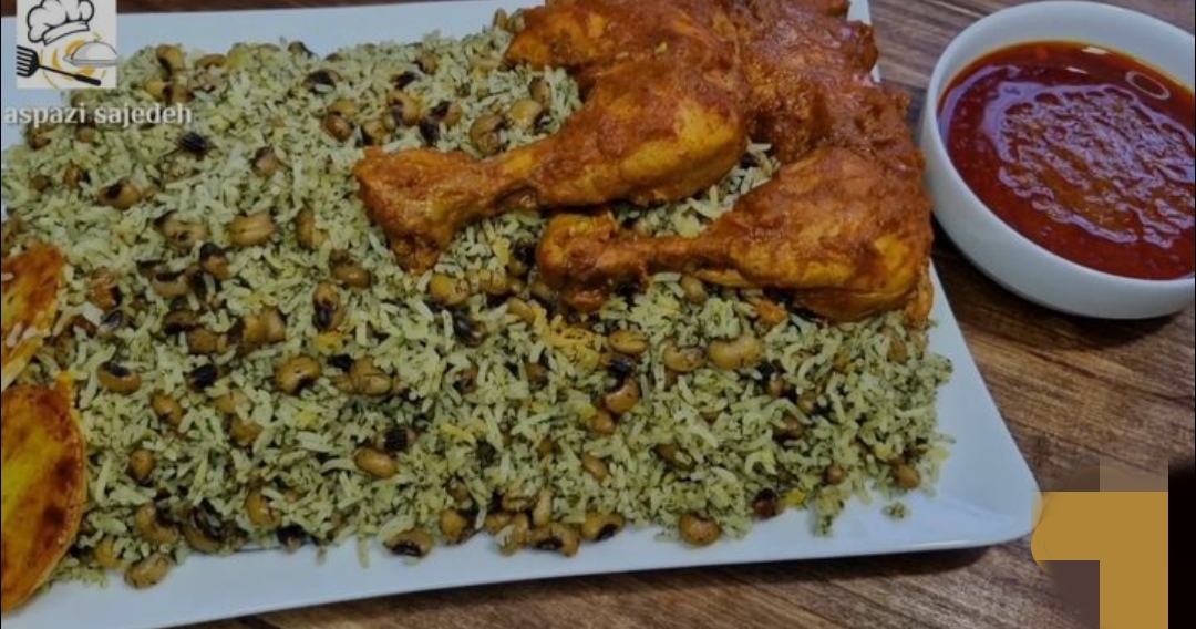 برنج مورد استفاده ی این غذا ایرانی بسیار خوش عطر و طعم بعلاوه ی لوبیای چشم بلبلی و مرغ بسیار خوش طعم