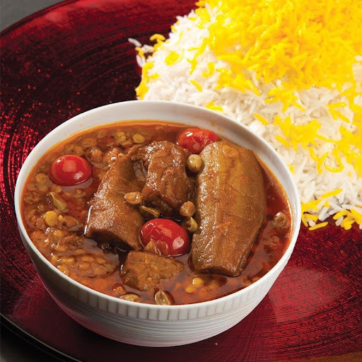 برنج مرغوب ایرانی و خورشت قیمه بادمجان بهمراه گوشت گرم گوسفندی